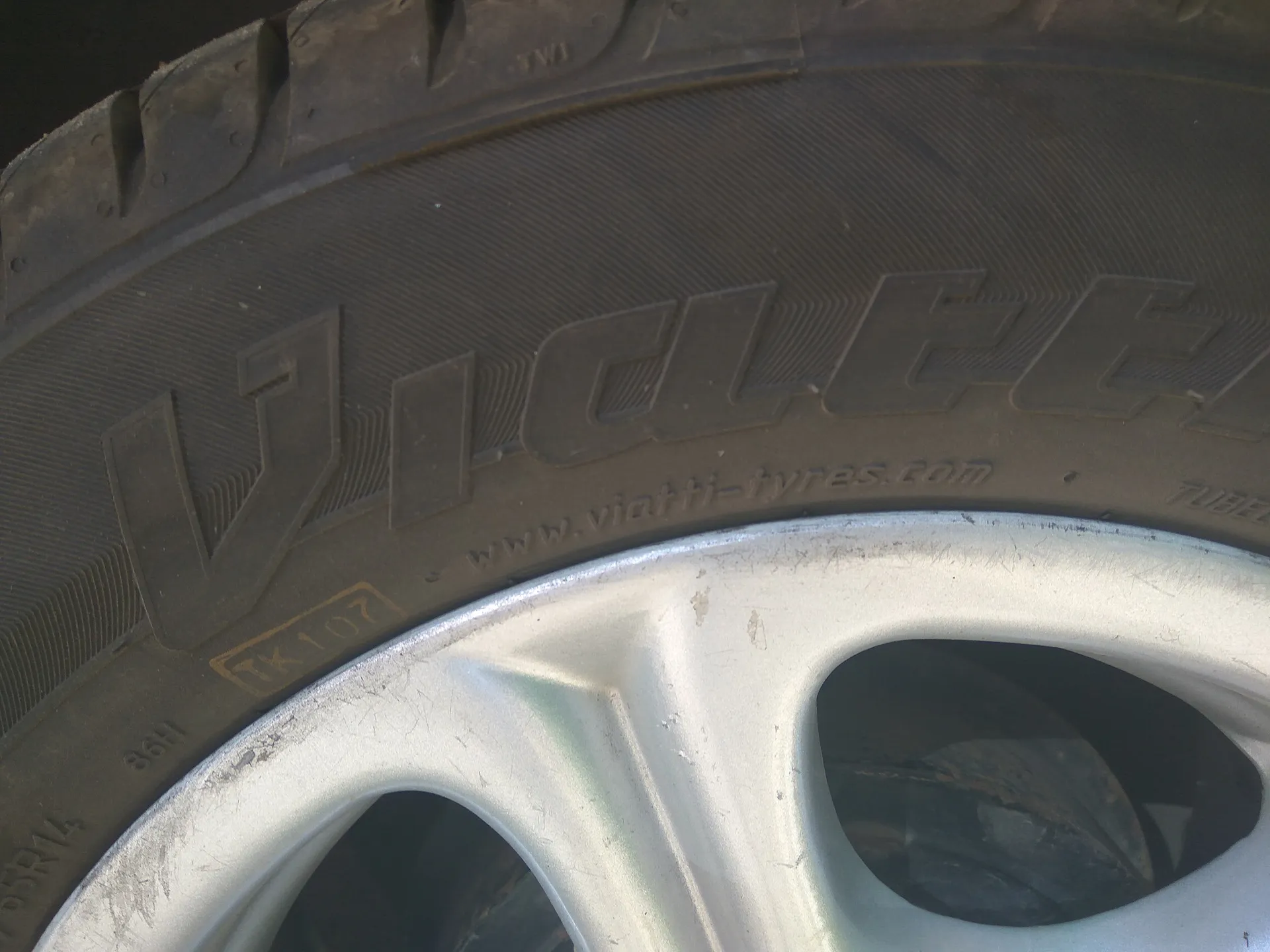 1VIATTI – торговая марка2www.viatti.ru – сайт изготовителя3Знак официального утверждения с номером страны, выдавшей сертификат и соответствующим номером сертификата4STRADA 2 – торговое наименование шины5DOT YAUD F90W (Department of transportation) соответствие требованиям США6Дата изготовления, состоящая из четырех цифр, из которых первые две обозначают порядковый номер недели, а вторые две - год изготовления7Логотип производителя8205/55R16 – обозначение типоразмера шины994 – индекс нагрузки – цифровой код, обозначающий максимальную нагрузку на шину10V – категория скорости – буквенный код, обозначающий максимальную скорость шины11EXTRA LOAD – обозначение шин с повышенной несущей способностью12V-134 – модель шины13TUBELESS – обозначение бескамерного исполнения шины14RADIAL – обозначение радиальной конструкции шины15OUTSIDE – внешняя сторона шин с асимметричным рисунком протектора, внутренняя сторона шины обозначается надписью «INSIDE»16ТУ – обозначение нормативного документа, по которому изготавливается шина17MADE IN RUSSIA – название страны-изготовителя18MAX. LOAD 670 Kg (1477 LBS); MAX. PRESS 350 kPa (51 PSI) – максимальная нагрузка в кг (фунтах) при максимальном давлении в шине в кПА (фунтах)19TREAD PLIES: 1 POLYESTER + 2 STEEL + 1 NYLON SIDEWALL PLIES: 1 POLYESTER – применяемые материалы и количество слоев в каркасеНаведите курсор на цифру, чтобы узнать подробнее